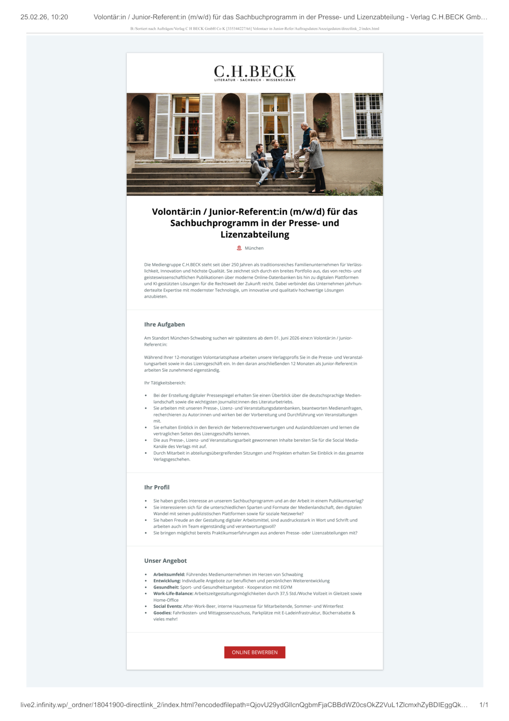 Am Standort München-Schwabing suchen wir spätestens ab dem 01. Juni 2026 eine:n Volontär:in / Junior-Referent:in: